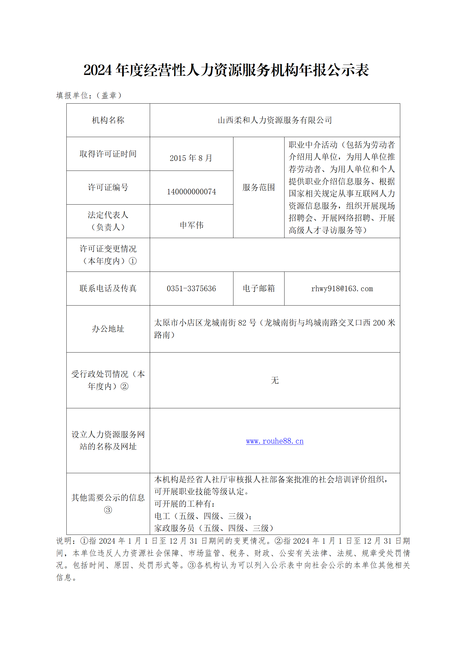 2024年度經營性人力資源服務機構年報公示表